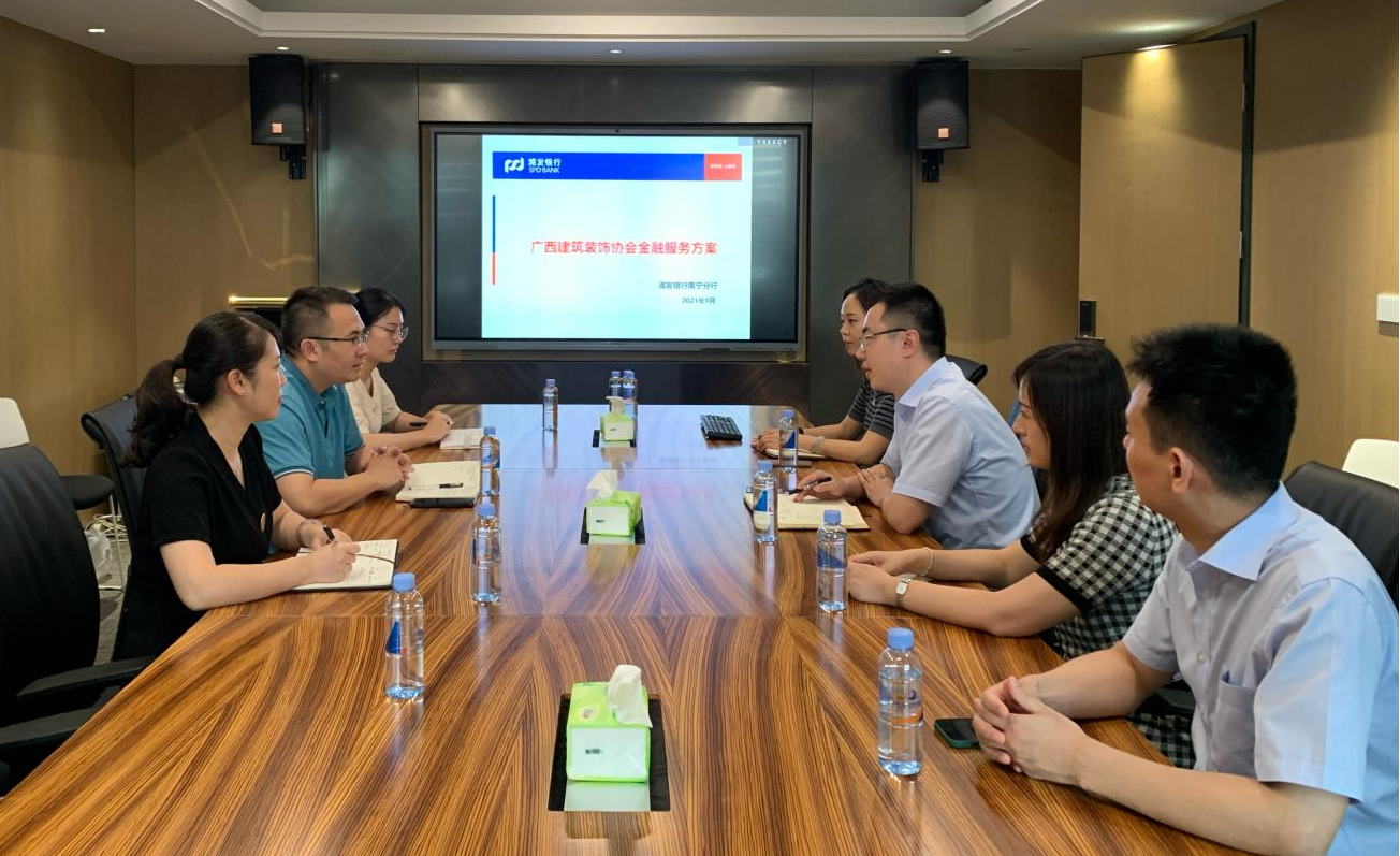 9月16日,浦发银行桃源支行一行到访广西建筑装饰协会,为“小微企业融资慢、融资贵、融资难”等问题,商讨共建金融平台, 为企业开辟助力渠道。