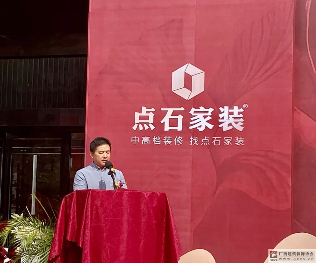 黄加仕监事长在活动中致辞,点石家装发展至今已有23年历史,已发展成为国内领军家装品牌。23年来,点石家装专注于中高档装修领域,是全国家装的头部实力企业,被中国建筑装饰协会称为“中国家装区域独角兽”品牌。在企业规模,交付品质以及中高档装修市场占有率上,一直位居全国前列。点石家装携近万平方米规模的旗舰店登录南宁,可以说是南宁最具规模的家装旗舰店之一。各界业主对于家装设计、基础装修、主材、设备、家具、软装需求都可以在这里进行一站式体验。同时,作为协会新入会员单位,希望点石家装能够与协会紧密联系,加强交流,发挥自身优势,共同促进广西装饰行业高质量发展。