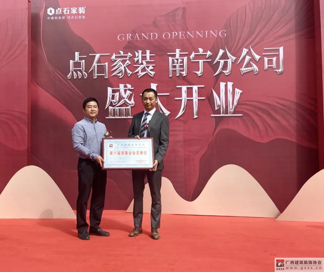 2021年10月17日,协会会员单位南宁市点石装饰设计有限公司(以下简称“点石家装南宁分公司”)举行开业庆典,广西建筑装饰协会监事长黄加仕代表协会出席此次庆典,向点石家装南宁分公司致以热烈的祝贺!