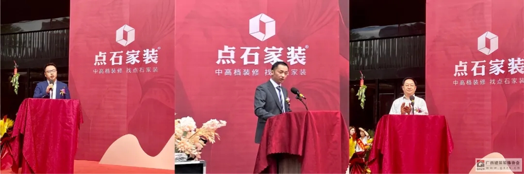 出席本次开业盛典的嘉宾还有:点石家装集团董事长袁超辉、点石家装南宁分公司总经理蔡琳华、广西湘商联合会会长贵仁勇等,依次上台为庆典致辞。