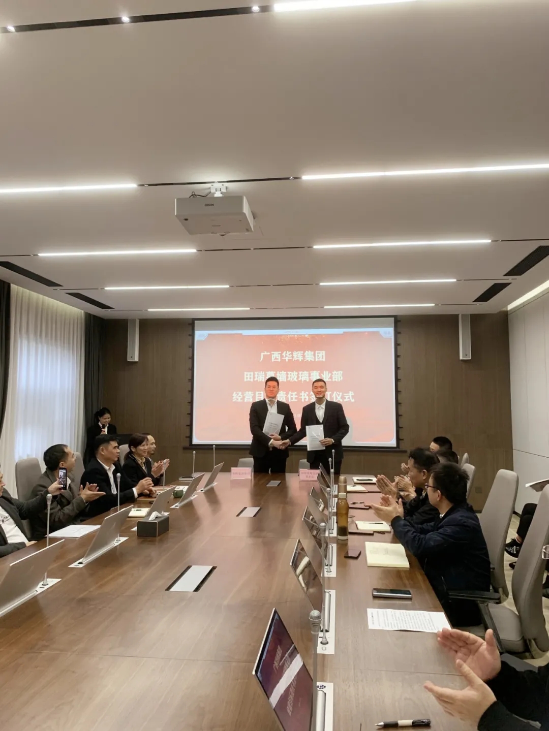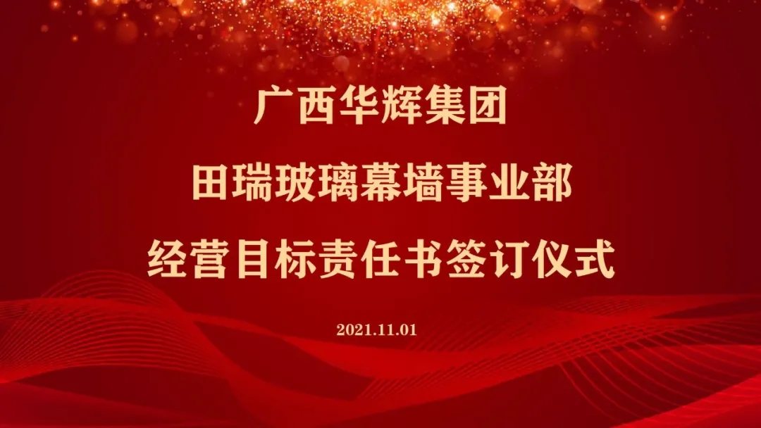 2021年11月1日,广西华辉装饰集团有限公司与南宁田瑞玻璃有限责任公司,正式成立“华辉集团田瑞玻璃幕墙事业部”,双方签署经营目标责任书,开启全新领域的拓展。