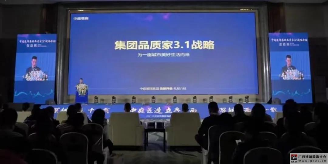 2021年11月4日上午,中庭装饰集团在南宁召开“品牌赋新,服务至心”品牌新形象与品质3.1战略发布会,庞耀国会长应邀出席本次活动并致辞。