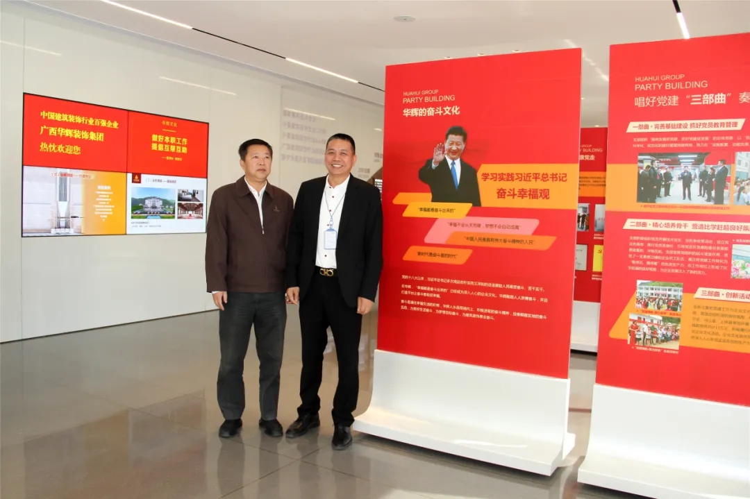 2021年11月10日,南宁市人民政府副市长、五象新区管委会副主任李建文率队到广西华辉装饰集团有限公司进行调研,南宁市住建局、司法局、金融办的分管领导,广西建筑装饰协会庞耀国会长参加了调研。李建文一行观看了华辉企业宣传片,参观了企业办公楼和党建阵地,重点调研了企业经营发展情况,充分肯定了华辉近年来所取得的成绩。调研座谈会上,李建文认真听取广西建筑装饰协会庞耀国会长关于广西建筑装饰行业发展概况的介绍,以及华辉集团董事长杨景忠关于华辉发展概况和规划的介绍,就装饰行业发展存在的困难和问题同与会人员进行交流、探讨,并提出指导意见。李建文指出,华辉集团要观大势谋全局,抢抓机遇,立足建筑装饰行业,不断提升行业地位,全面做强做优。