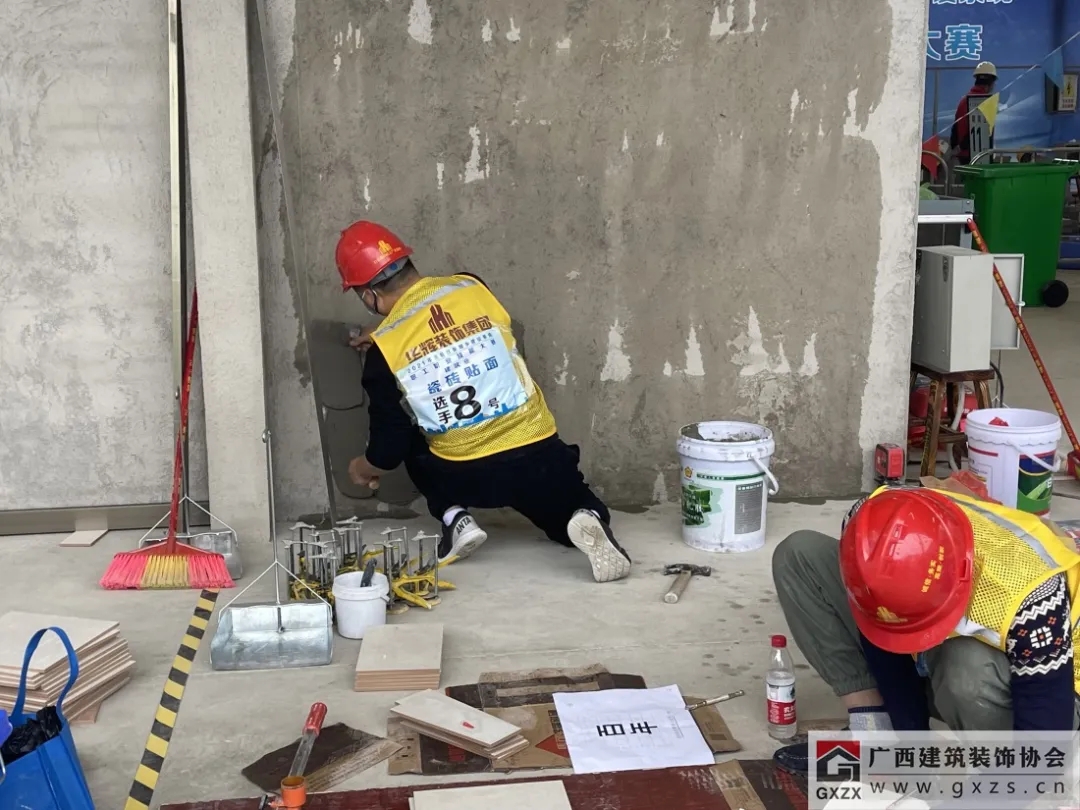 广西华辉装饰集团有限公司选手参加瓷砖贴面比赛