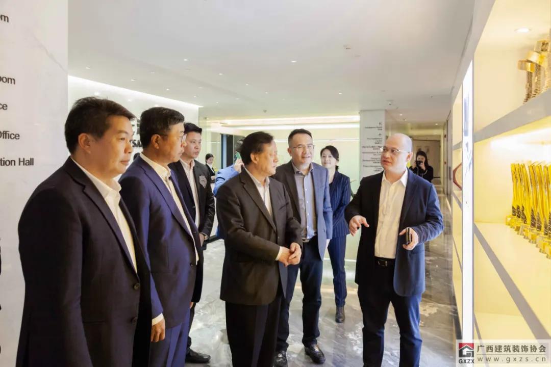 2021年12月14日~15日,中国建筑装饰协会会长刘晓一,中国建筑装饰协会副会长、深圳市装饰行业协会会长高刚,中国建筑装饰协会副会长、深圳市宝鹰建设集团股份有限公司党委书记、总经理古少波一行领导到广西(南宁)参加“广西建筑装饰协会六届五次会员代表大会暨广西建筑装饰产业转型升级研讨会”间隙,为了更好的深入了解广西装饰企业发展状况,刘晓一会长一行先后莅临到访广西华辉装饰、广西三源装饰两家装饰装修专业承包企业进行调研,广西建筑装饰协会庞耀国会长陪同参与调研。
