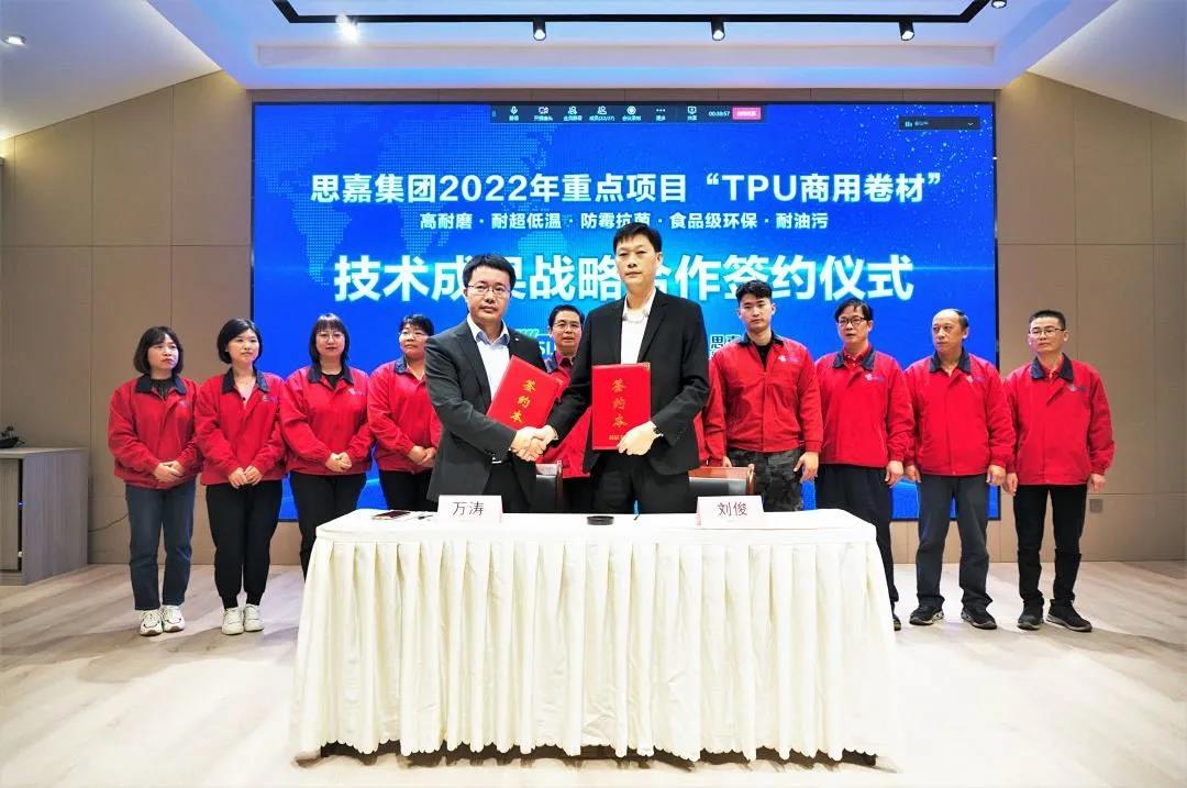思嘉举行“TPU商用卷材”技术成果战略合作签约仪式,将以此为契机,深耕TPU行业,探索新应用领域。