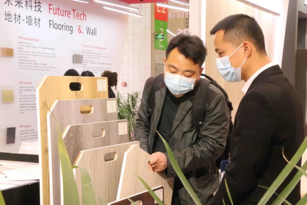 思嘉超能芯在此次展会上展出众多新品,如PP 地板、六边形圆弧倒角LVT地板、EUF 地板、MIF磁吸地材等,受到观众们的极大关注。