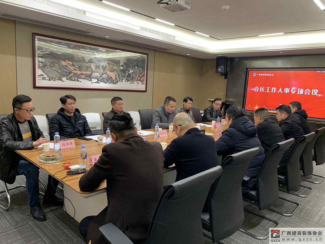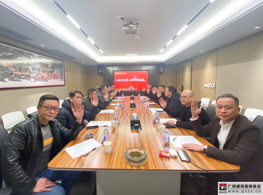 2022年1月17日晚,庞耀国会长在南宁主持召开会长工作人事专项会议,在邕的协会领导班子成员以及协会监事长共12人参加会议。