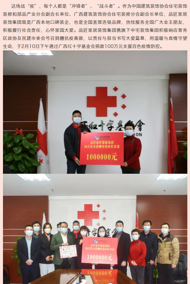 【广西品匠装饰】捐款100万,助力抗疫|品匠家居装饰集团支援百色疫情防控