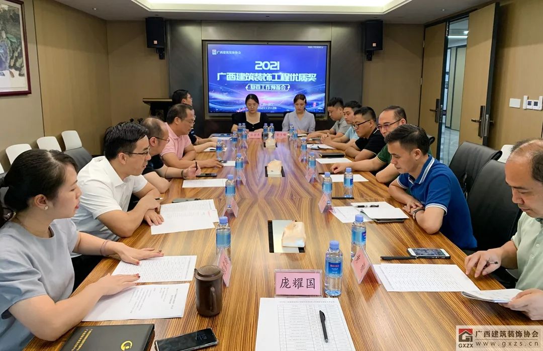 2021年协会依旧严格按照《广西建筑装饰工程优质奖评选办法》的要求开展评选活动,开放透明,高质量完成2021年广西建筑装饰工程优质奖评选工作。同年8月,为更好开展广西装饰奖的评奖工作,协会秘书处主动联系各地市住建局的建管科(建管中心)、质安科相关负责人、协会部分领导班子成员,参与广西装饰奖的现场复查评审工作,一是为了领导们更主动了解协会的评奖工作;二是让领导们监督评审专家的现场评审工作,促进广西装饰奖的评选良性发展。