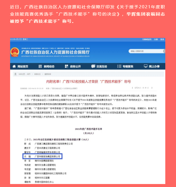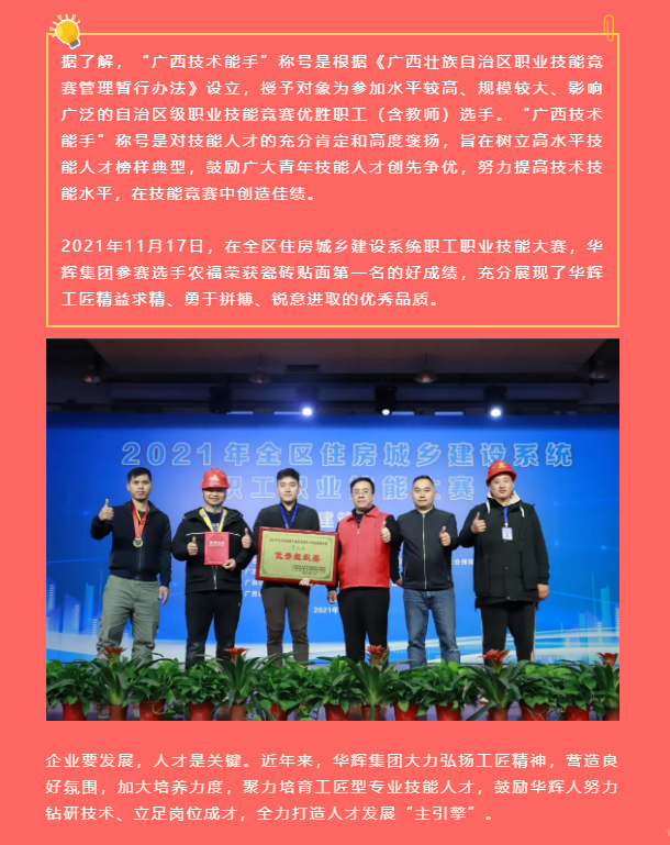 【华辉集团】喜报 华辉工匠被评为“广西技术能手”