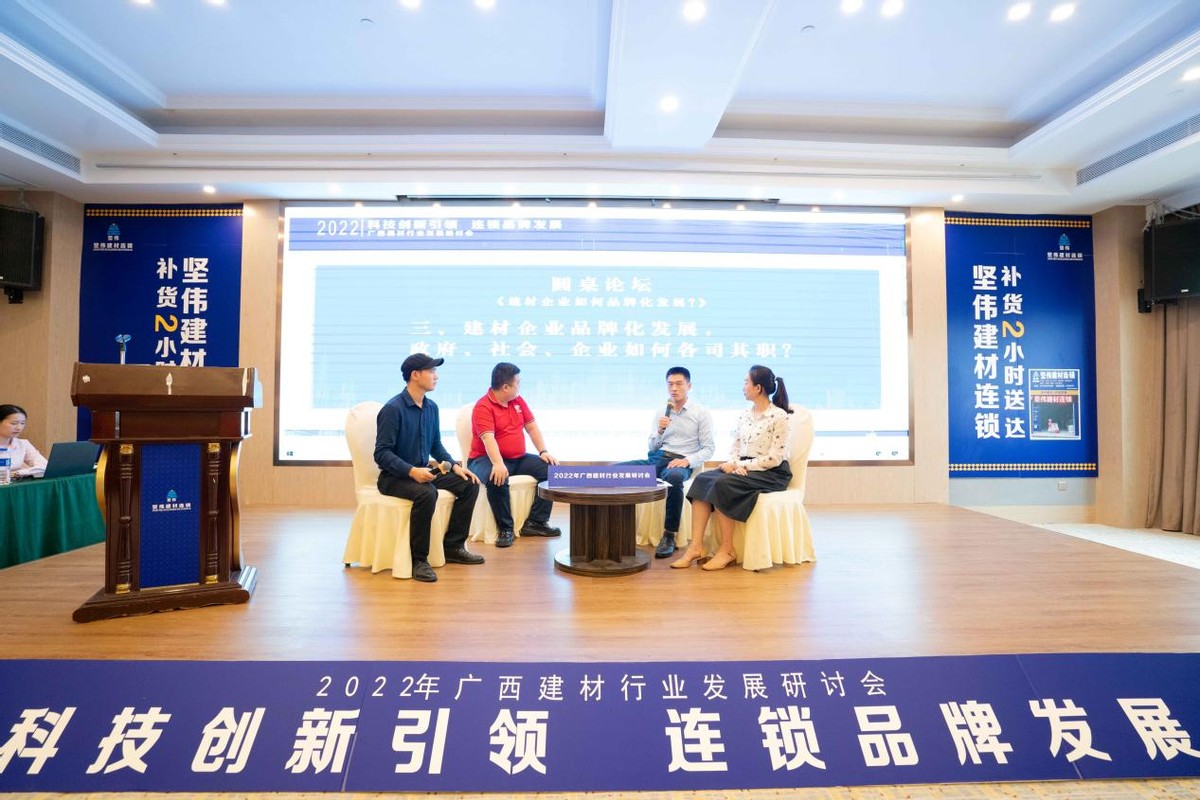 部分与会领导嘉宾还参观了广西建材行业连锁的领先品牌——坚伟建材连锁公司的办公大楼和门店。研讨会既有会议研讨也有参观学习,理论结合实践,使大家对建材行业的绿色发展更加充满信心。本次研讨会由广西建筑装饰协会、中国建材流通协会等指导,坚伟建材连锁主办,华辉装饰集团特约协办,广西纵览线缆集团、南宁市新天星涂料有限公司(多乐士涂料南宁市总代理)等协办。