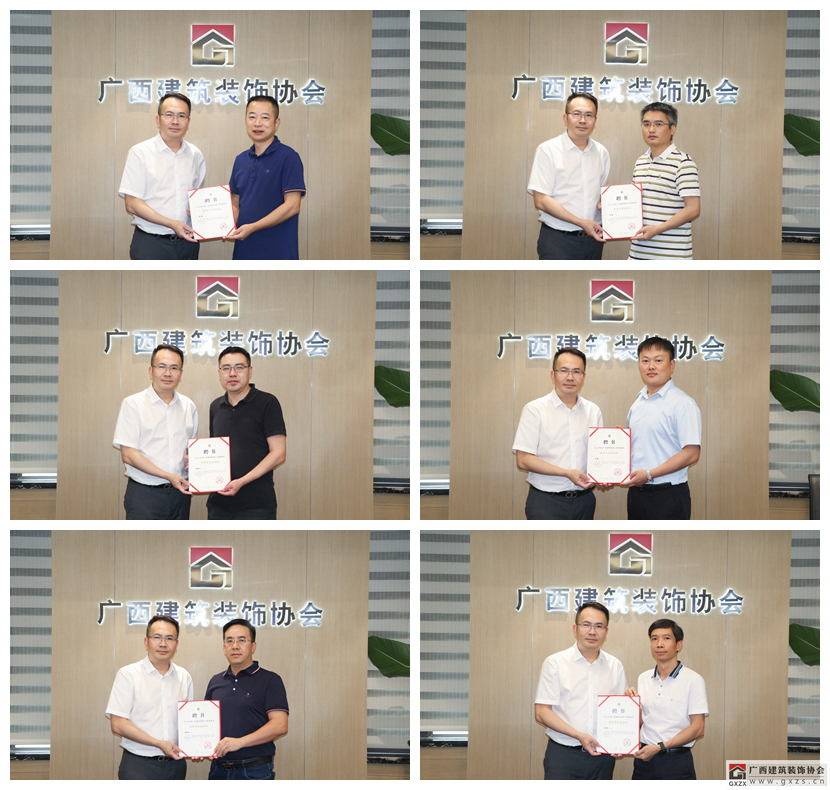 庞会长代表协会给“2022年广西建筑装饰工程优质奖(第一批)项目复查专家组长”颁发聘书