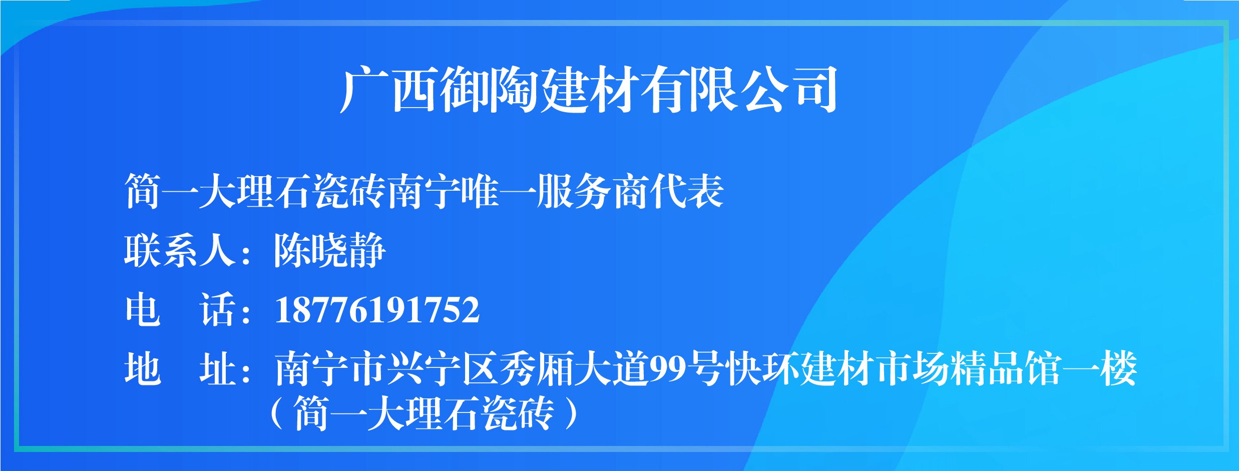 广西御陶建材有限公司为2017年底注册成立,未成立公司前为经营部,为不断发展壮大公司业务成立公司,自2004年起即作为简一大理石瓷砖南宁唯一服务商代表,经营推广简一品牌。