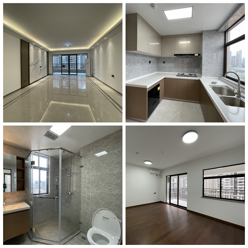 3、施工工艺精良,瓷砖排砖正确,表面平整、砖缝均匀;天花吊顶装饰线条顺直、贯通,阴阳角方正、顺直;墙面天花乳胶漆色泽均匀;木饰面板接缝严密,表面平整,与墙体的交接严密、顺直,整体观感效果好;