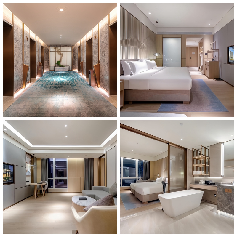 1、本装饰工程不同材质的交接点多,衔接需要非常准确,否则容易造成观感差,开裂、不平等一系列问题。 针对这些问题,项目部组织优秀深化设计团队,深入领会甲方、设计、酒管意图,结合现场实际情况,认真消化、深化完善图纸。完善图纸节点大样,方案优化,排版,天花、墙面综合布置图的绘制等,由项目经理和技术经理统筹指挥,分区域落实到每个深化人员头上,将问题前置。