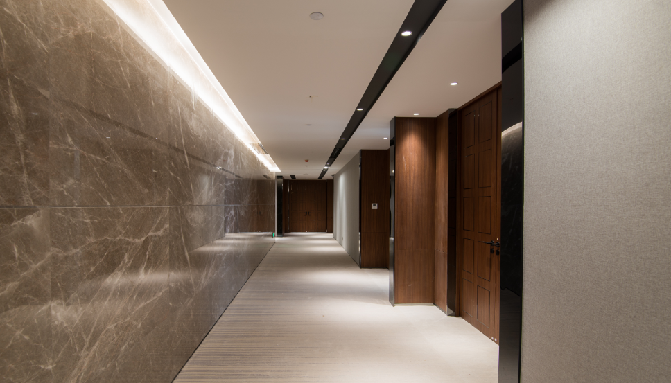 承建单位:广西华辉装饰集团有限公司建设地点:南宁市青秀区民族大道118-3号(石门森林公园入口处)承建范围:洋浦办公楼21、24、25及26层地面装修、墙面装修、天面装修及与个专业分包的配合工作,包括装修施工图纸中相应的涉及水电改造及安装的电气、给排水工程。