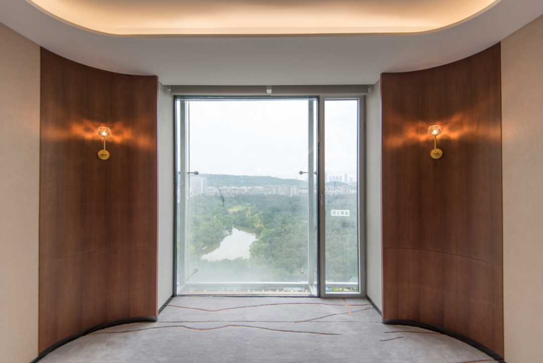 本项目石材、铝板、玻璃、不锈钢、木饰面施工项目多,工期短、加工周期长、广西华辉装饰集团有限公司全部采用装配式施工工艺,场外加工、现场安装。确保了工期和工程的质量。尤其是木饰面场外加工生产,现场安装后无任何油漆异味。保护了环境,同时还减少了现场的固体垃圾。做好绿色环保施工。